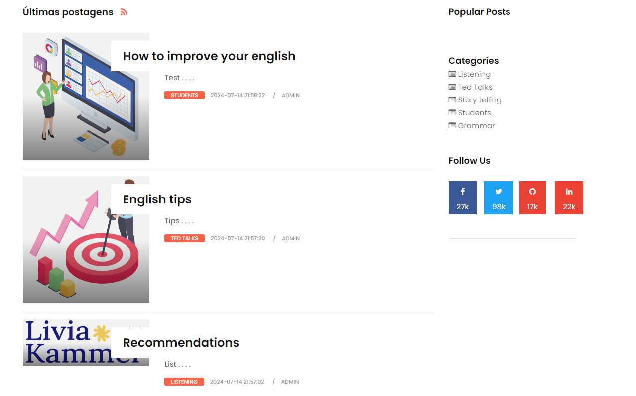 - Os próprios alunos podem postar no blog e praticarem o seu inglês